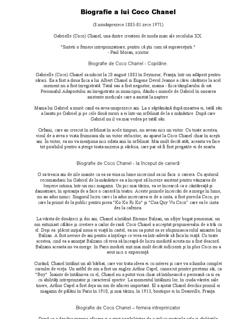 .vocea, coco chanel a rămas în istorie nu doar datorită creațiilor sale vestimentare, parfumurilor, bijuteriilor sau genților, ci și datorită felului în care gândea. Enjoy reading coco chanel life story on astrumpeople. Mundo dos investimentos 117.635 views8 months ago.